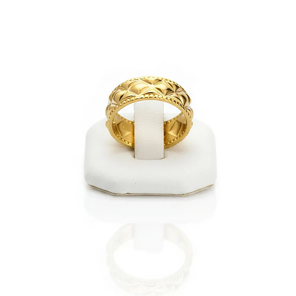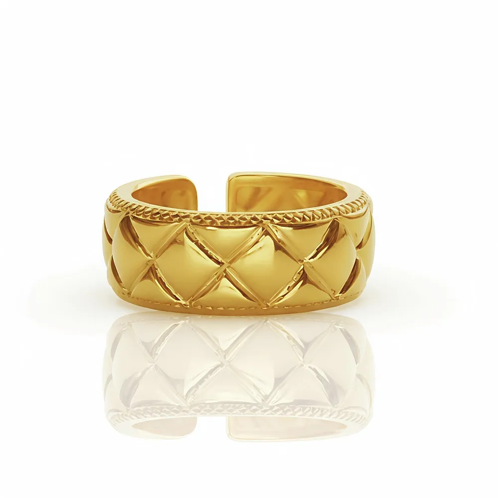 Αναδείξτε το στυλ σας με το δαχτυλίδι καπιτονέ, ένα κόσμημα που συνδυάζει διαχρονική κομψότητα και μοντέρνο design.