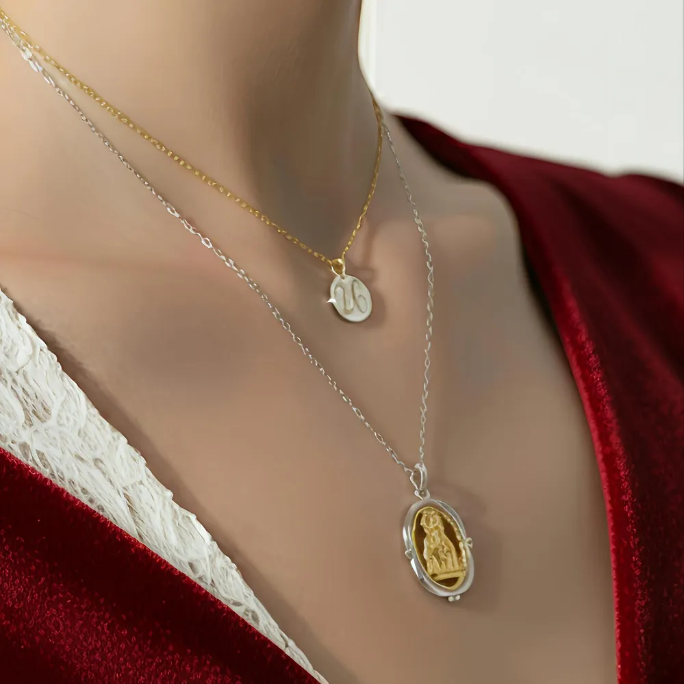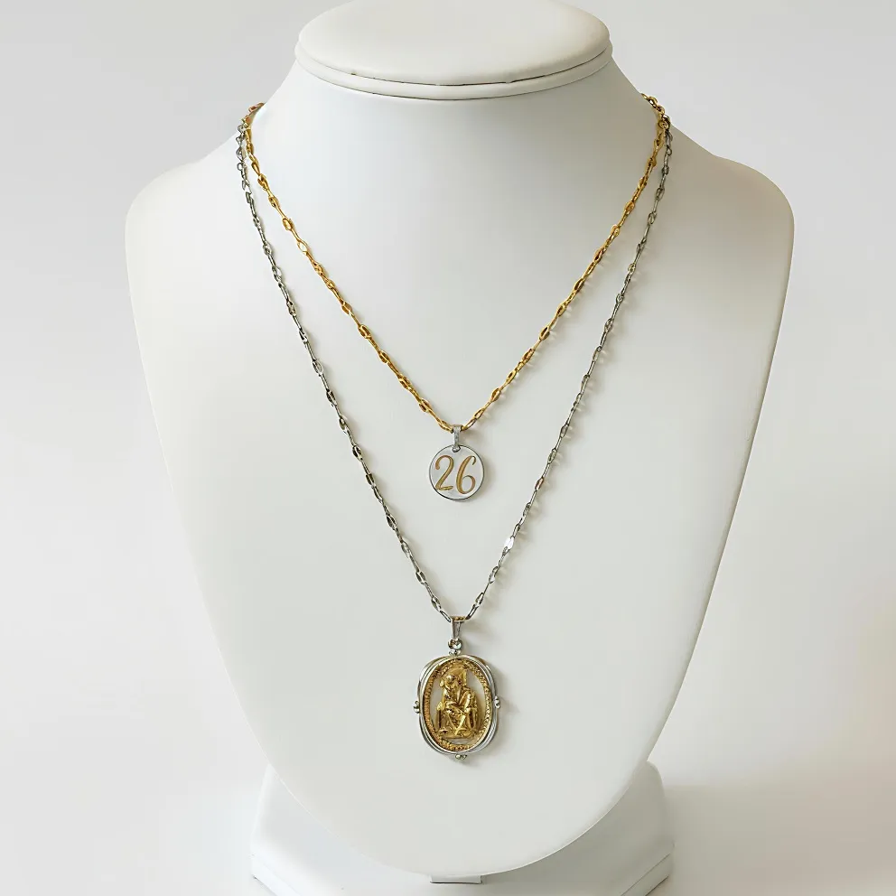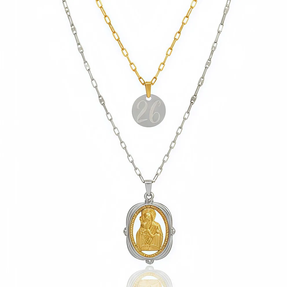 Ένα μοναδικό, χειροποίητο διπλό μενταγιόν, δημιουργία του Oluolu, που συνδυάζει την ιερότητα του φυλαχτού με τη λάμψη ενός σύγχρονου γουριού.