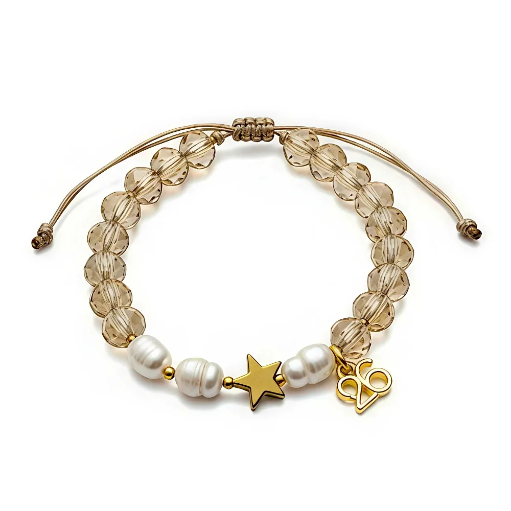 Βραχιόλι Γούρι 2026 με Κρύσταλλα, Μαργαριτάρια & Αστέρι Αιματίτη χρώμα σαμπάνι