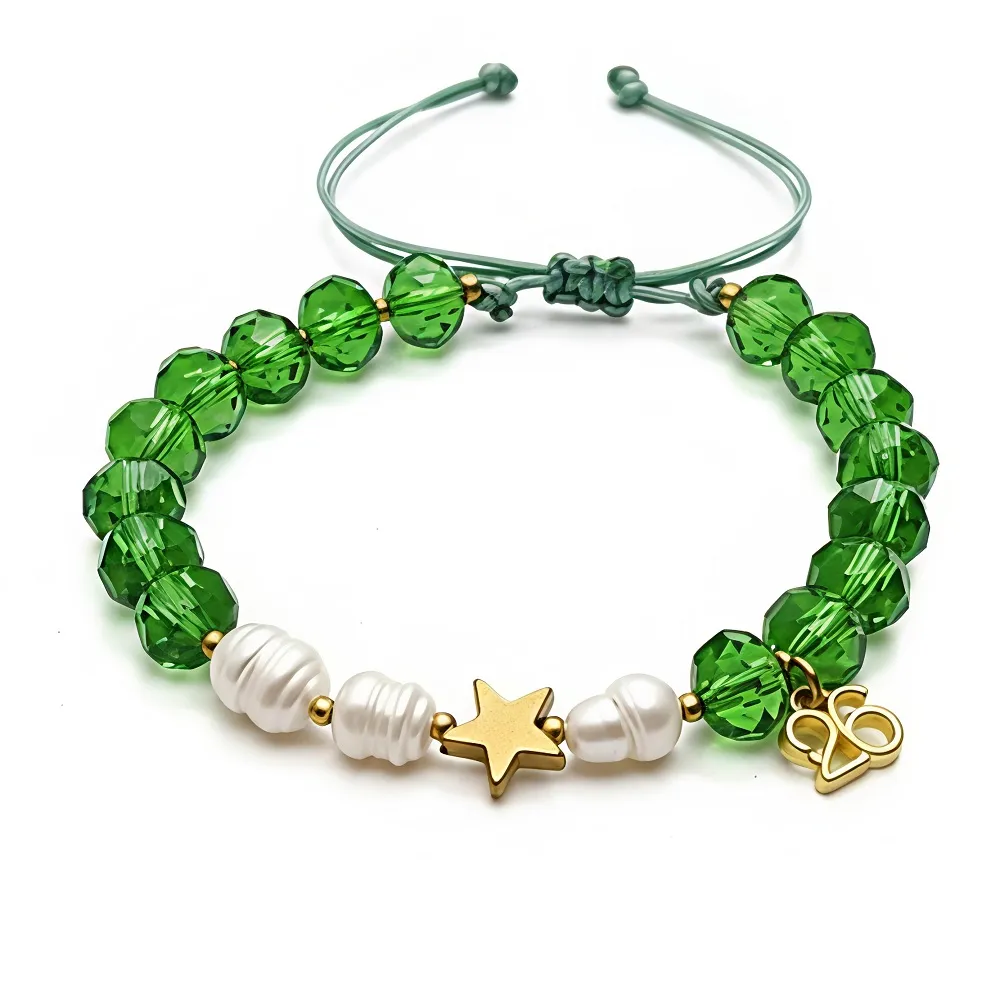 Βραχιόλι Γούρι 2026 με Κρύσταλλα, Μαργαριτάρια & Αστέρι Αιματίτη πράσινο