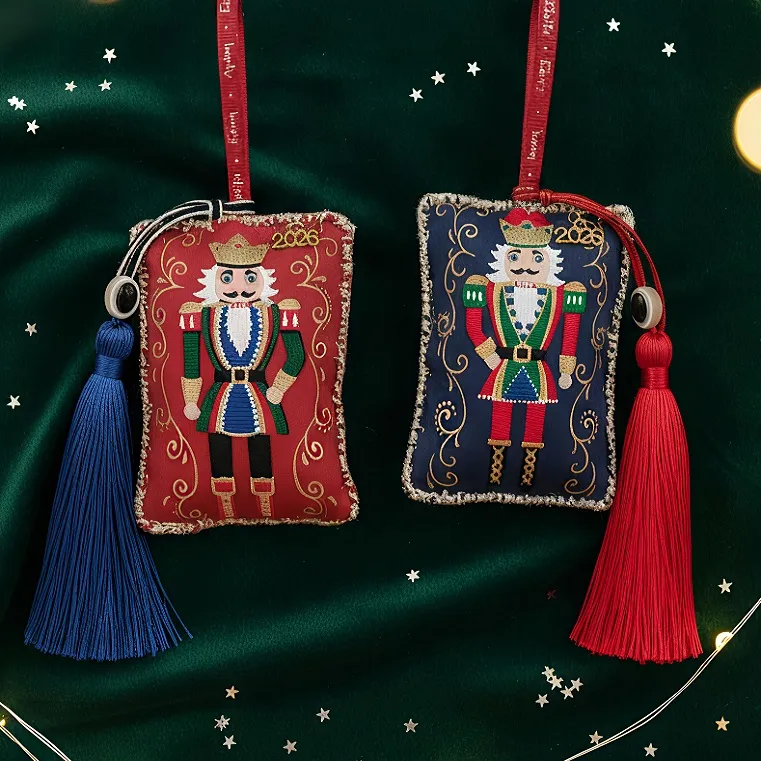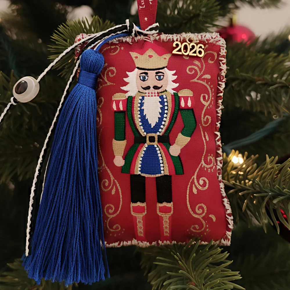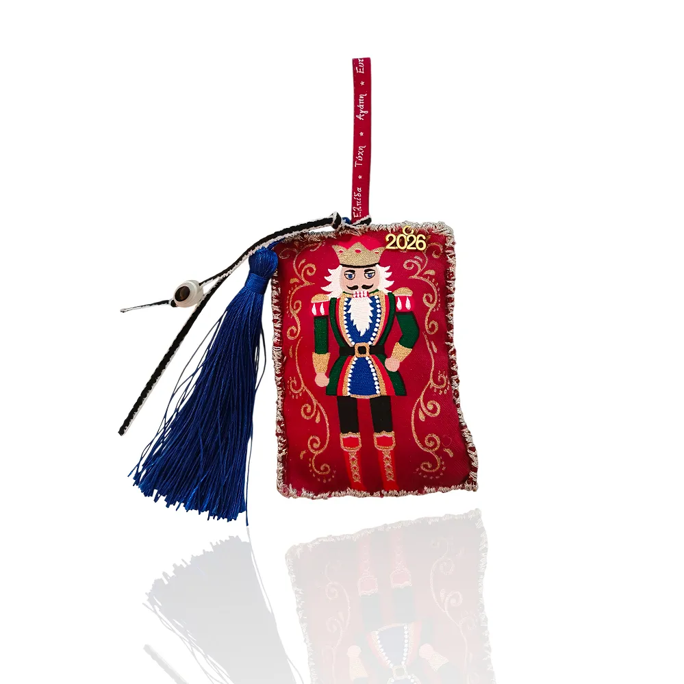 Γούρι 2026 Καρυοθραύστης, 100% χειροποίητο και ραμμένο στο χέρι από ύφασμα υψηλής ποιότητας. Διακοσμημένο με ματάκι, φούντα και κορδέλα ευχών.