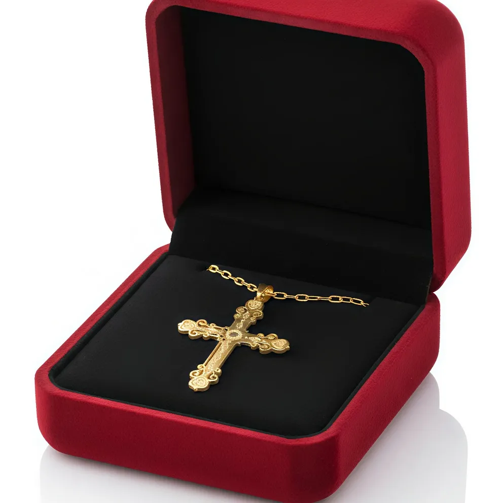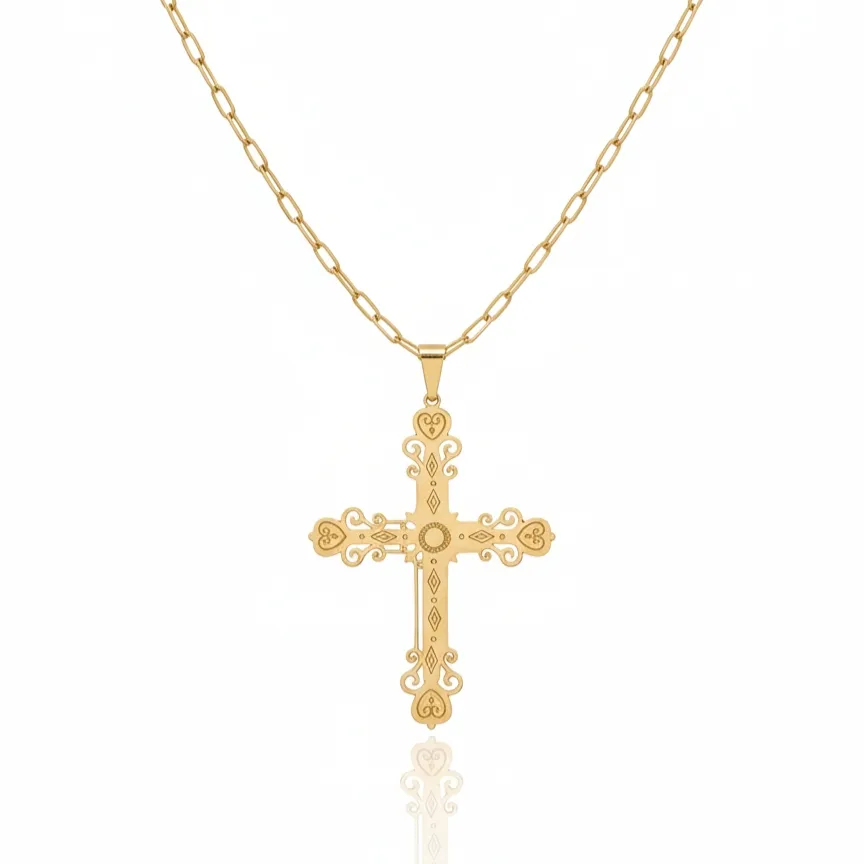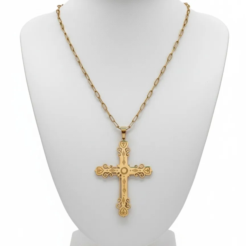 Κομψός και διαχρονικός, αυτός ο αντικέ χρυσός σταυρός από ανοξείδωτο ατσάλι συνδυάζει την κλασική αισθητική με τη μοντέρνα απλότητα.