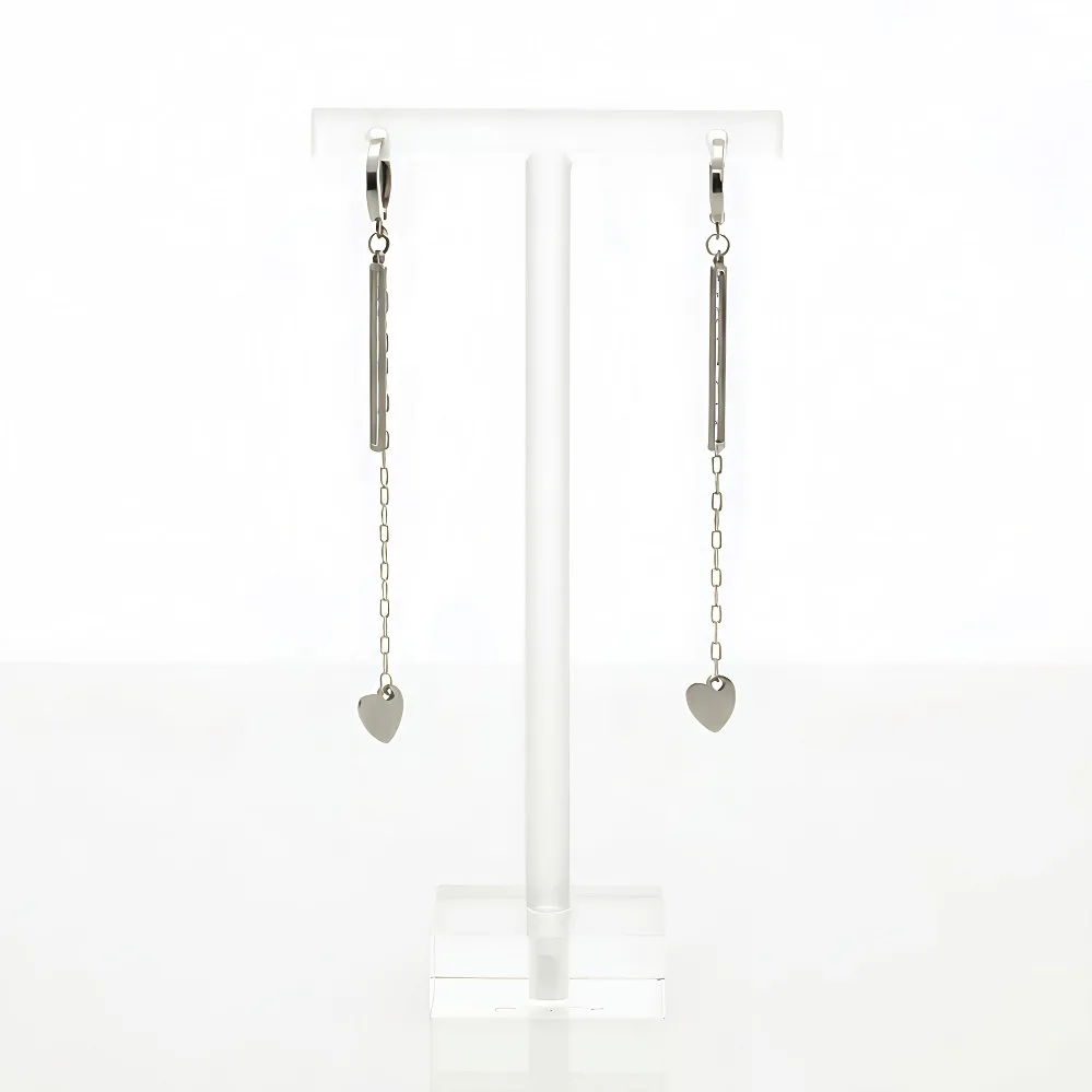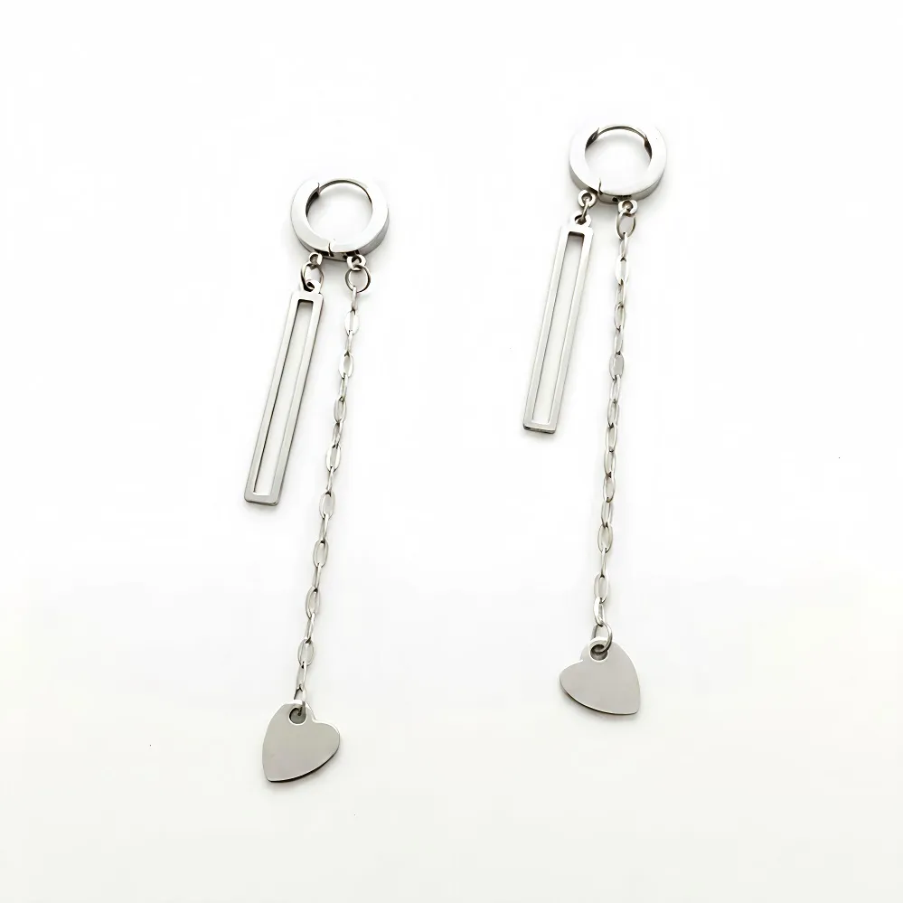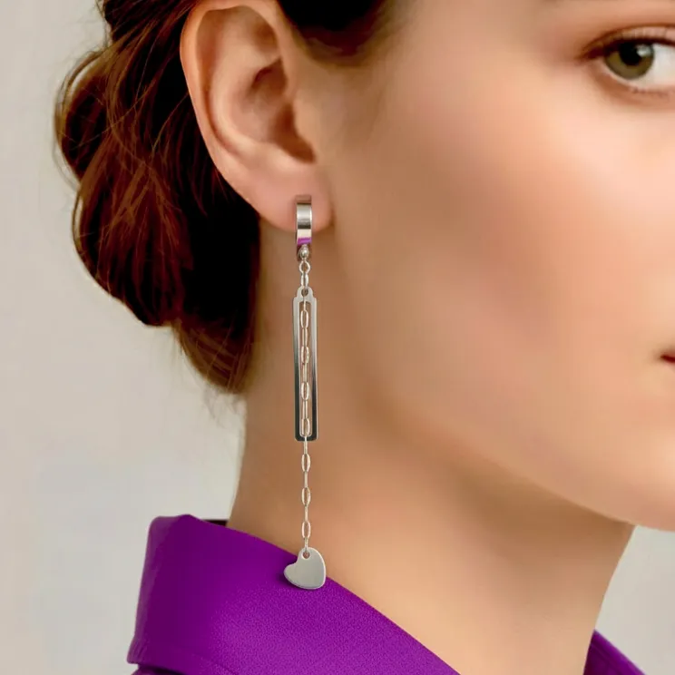 Το σχέδιο χαρακτηρίζεται από ένα μακρύ, λείο ορθογώνιο στο πάνω μέρος, από το οποίο κρέμεται μια λεπτή, κομψή αλυσίδα. Η αλυσίδα καταλήγει σε μια γυαλιστερή μικρή καρδιά, ολοκληρώνοντας το ρομαντικό αλλά και σύγχρονο στυλ του κοσμήματος.