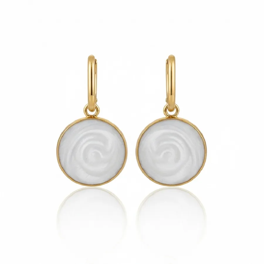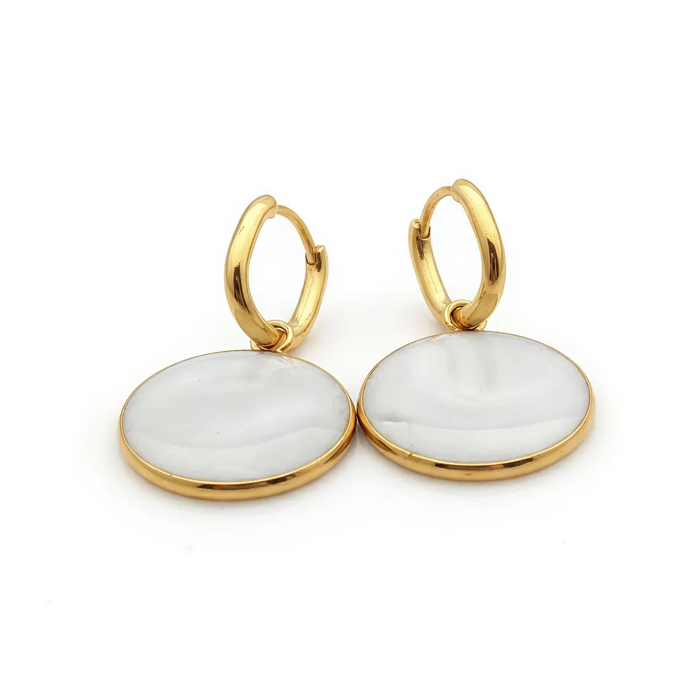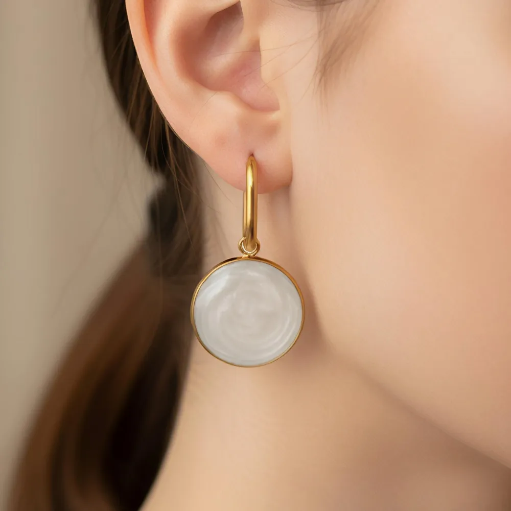 Αυτό το ζευγάρι σκουλαρικιών διαθέτει έναν κομψό, οβάλ κρίκο κούμπωμα, κατασκευασμένο από υψηλής ποιότητας ανοξείδωτο ατσάλι σε χρυσή απόχρωση.