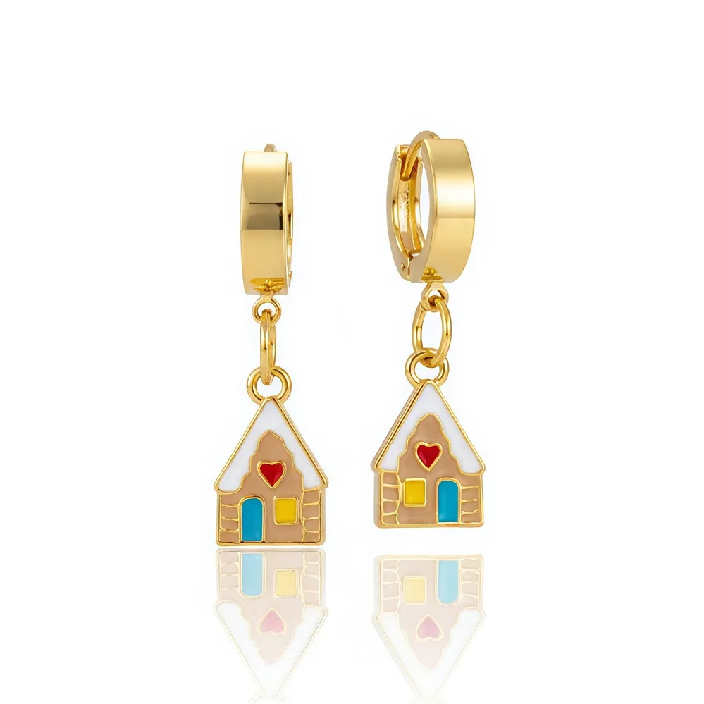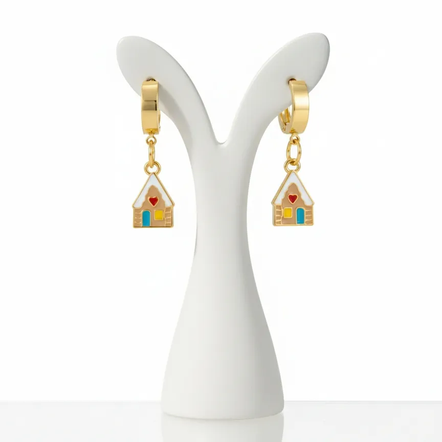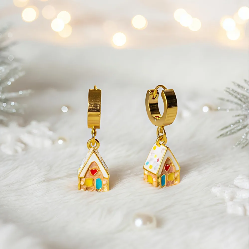 Φέρτε τη ζεστασιά των Χριστουγέννων στην εμφάνισή σας με αυτά τα υπέροχα σκουλαρίκια. Το σχέδιο απεικονίζει ένα γλυκό χριστουγεννιάτικο σπιτάκι με χιονισμένη σκεπή (σμάλτο), που θα σας γεμίσει με γιορτινή διάθεση.