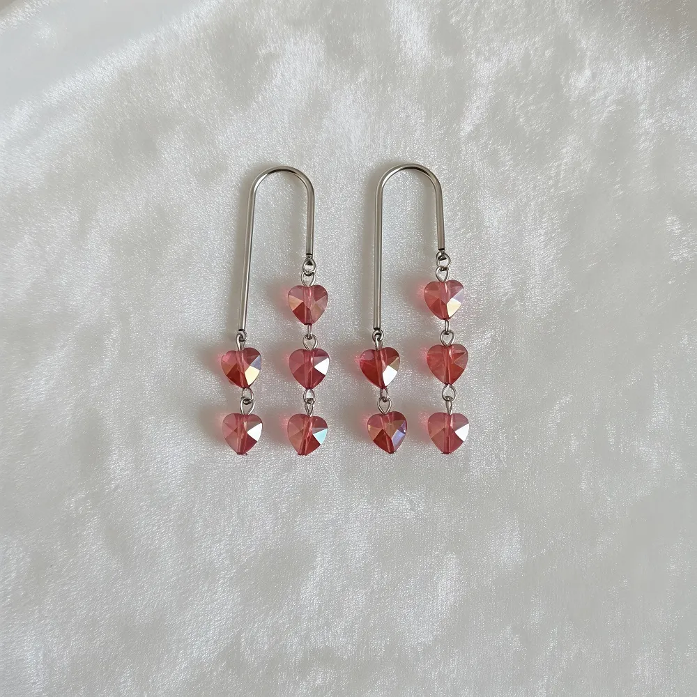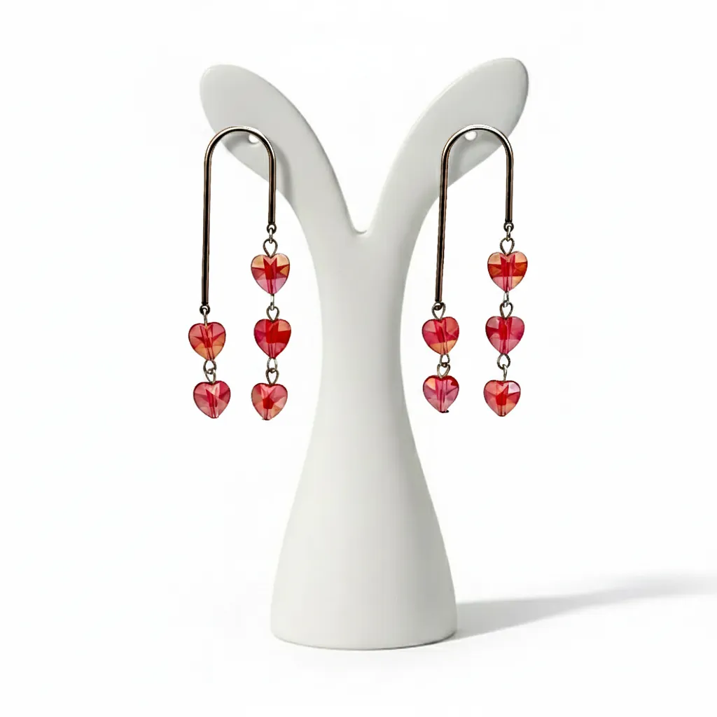Κατασκευασμένα από άριστης ποιότητας Ανοξείδωτο Ατσάλι, διαθέτουν μια κομψή, μακρόστενη μπάρα που καταλήγει σε έναν εντυπωσιακό καταρράκτη από τρεις αστραφτερές κρυστάλλινες καρδιές. Τα κρύσταλλα είναι ειδικά κομμένα για να εξασφαλίζουν απίστευτη λάμψη και αντανάκλαση του φωτός, τραβώντας όλα τα βλέμματα.