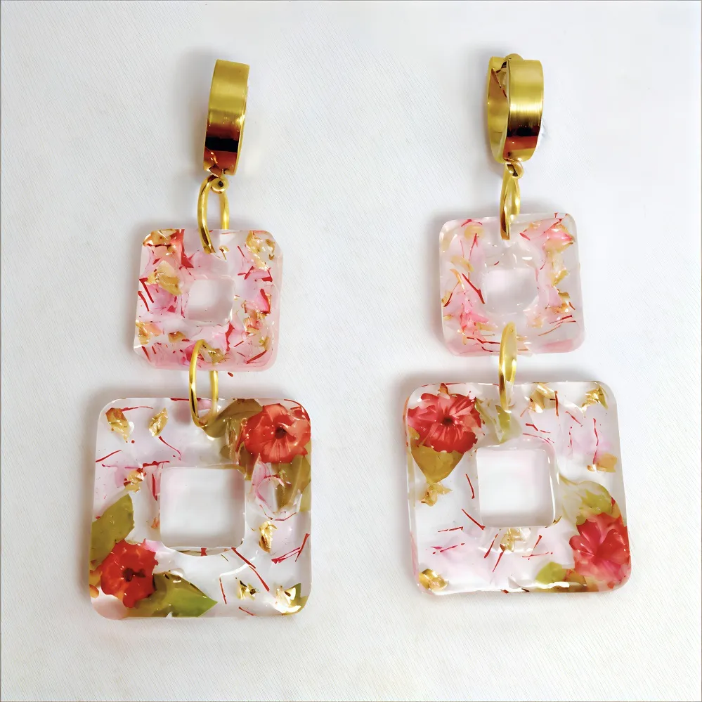 Υγρό γυαλί (ρητίνη) που αγκαλιάζει τα φυσικά αποξηραμένα λουλούδια.