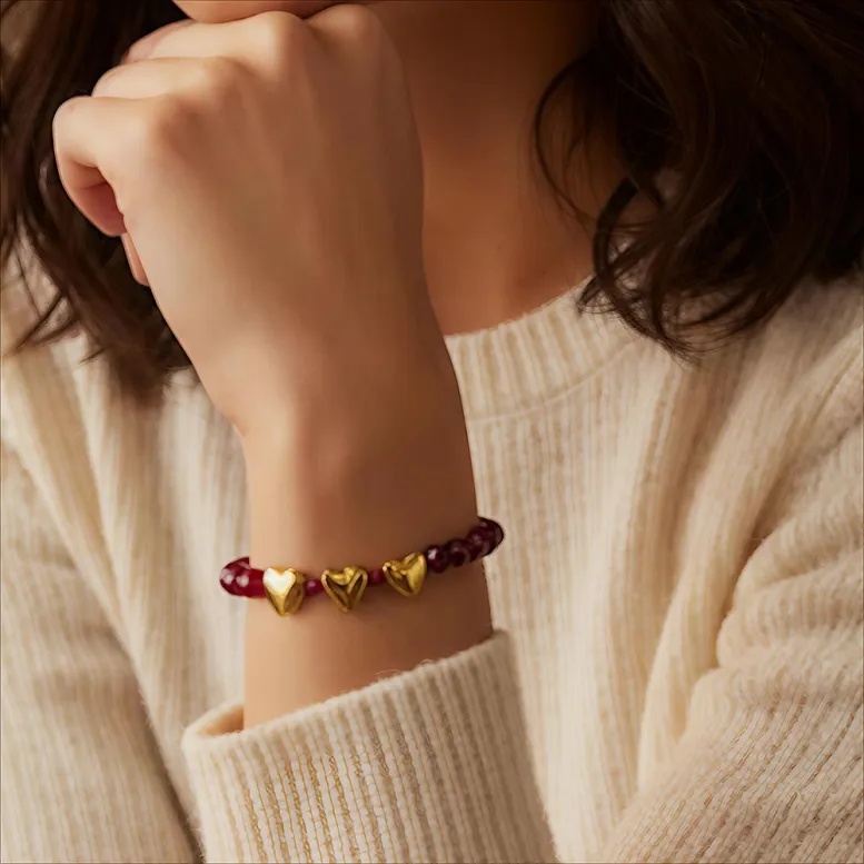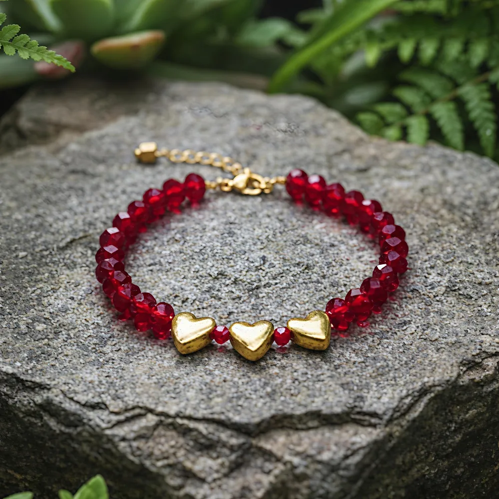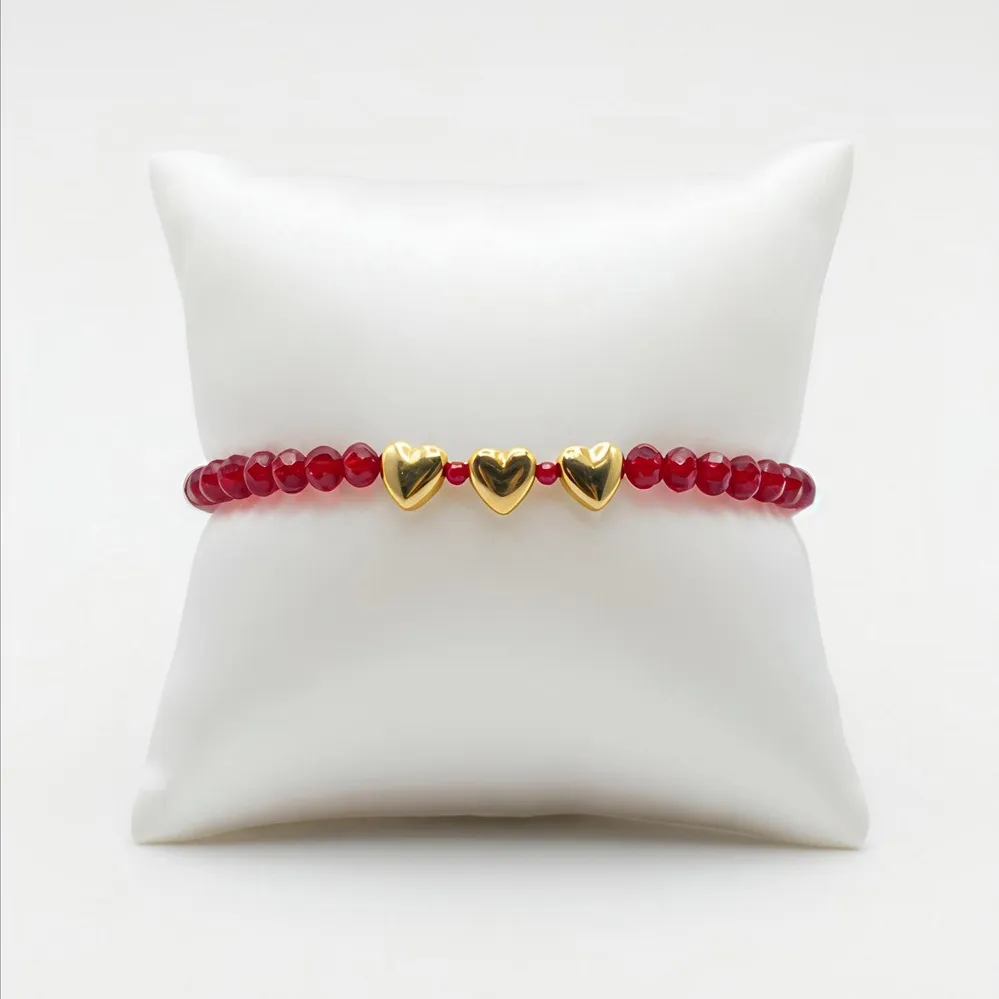Χάρισε στον εαυτό σου ή στο αγαπημένο σου πρόσωπο αυτό το υπέροχο βραχιόλι με κρυστάλλινες χάντρες, που συμβολίζει την αγάπη σε κάθε του λεπτομέρεια. Στο κέντρο του ξεχωρίζουν τρεις καρδιές από ανοξείδωτο ατσάλι, που αποπνέουν ρομαντισμό και τρυφερότητα.
